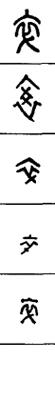 从上到下依次是小篆、甲骨文、金文、古玺及战国文字、缪篆及汉代文字、鸟虫篆。
