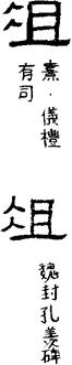 首于皇考剌(烈)俎……”王人聰《釋西周金文的俎字》讀俎為祖。按《史記·五帝本紀》:“嫘祖。”集解引徐廣曰:“祖一作俎。”