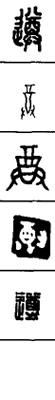从上到下依次是小篆、甲骨文、金文、古玺及战国文字、缪篆及汉代文字、鸟虫篆。