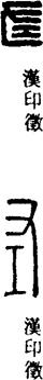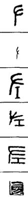 从上到下依次是小篆、甲骨文、金文、古玺及战国文字、缪篆及汉代文字、鸟虫篆。