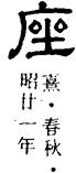 〈辨〉座字从广从坐会意,表示厅堂中坐位;坐也是声符◇注意,此字后出,原来写作坐,是坐的一个义项,所以至今“座位”也作“坐位”;但是座字的其他义项不能写作坐。
