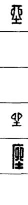 从上到下依次是小篆、甲骨文、金文、古玺及战国文字、缪篆及汉代文字、鸟虫篆。