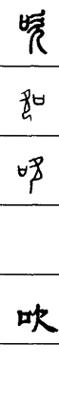 【说明】“吹”是会意字,从“口”从“欠”(像人张口出气形)。