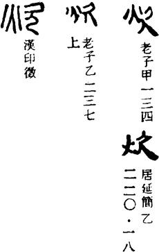 从上到下依次是小篆、甲骨文、金文、古玺及战国文字、缪篆及汉代文字、鸟虫篆。