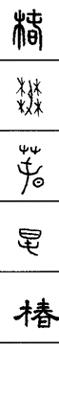 从上到下依次是小篆、甲骨文、金文、古玺及战国文字、缪篆及汉代文字、鸟虫篆。