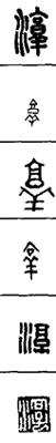 从上到下依次是小篆、甲骨文、金文、古玺及战国文字、缪篆及汉代文字、鸟虫篆。