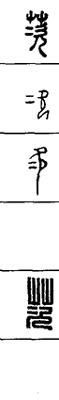 从上到下依次是小篆、甲骨文、金文、古玺及战国文字、缪篆及汉代文字、鸟虫篆。
