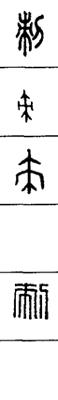 从上到下依次是小篆、甲骨文、金文、古玺及战国文字、缪篆及汉代文字、鸟虫篆。