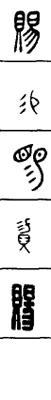 从上到下依次是小篆、甲骨文、金文、古玺及战国文字、缪篆及汉代文字、鸟虫篆。