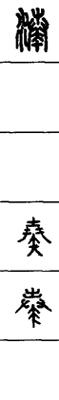 从上到下依次是小篆、甲骨文、金文、古玺及战国文字、缪篆及汉代文字、鸟虫篆。