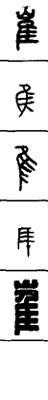 从上到下依次是小篆、甲骨文、金文、古玺及战国文字、缪篆及汉代文字、鸟虫篆。