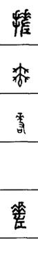 从上到下依次是小篆、甲骨文、金文、古玺及战国文字、缪篆及汉代文字、鸟虫篆。