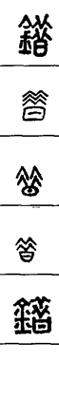 从上到下依次是小篆、甲骨文、金文、古玺及战国文字、缪篆及汉代文字、鸟虫篆。