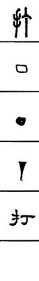 打1门|打1鼓|打1桩|打1钎|打1苍蝇|打1狗|敲打1|拍打1|捶打1。b)被击致碎