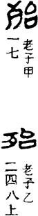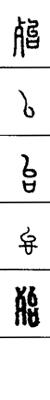 从上到下依次是小篆、甲骨文、金文、古玺及战国文字、缪篆及汉代文字、鸟虫篆。
