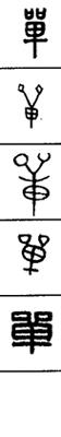 单,本是古代的一种打猎工具,也可用作杀敌的武器。甲骨文、金文的单字,象一件长柄两角的杈杆之形。这种杈杆,可以用来刺击或抵挡野兽;它的上端叉角上还缚有石块,可以甩出去击伤猎物。这种打猎工具盛行于原始时代,后世罕见。而单字则多借用为单独、单一、单薄等义,其本义已渐消失,罕为人知。