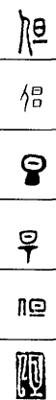从上到下依次是小篆、甲骨文、金文、古玺及战国文字、缪篆及汉代文字、鸟虫篆。