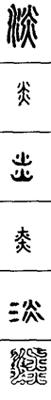 从上到下依次是小篆、甲骨文、金文、古玺及战国文字、缪篆及汉代文字、鸟虫篆。