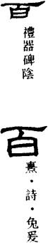 〈辨〉百字甲骨文为指事字,在白字上加注折角形指事符号,仍以白为声符,是种用指事的方法造出的形声字;后来又在上部加形符一,一为数目之始,表示数目。金文、篆书字形讹变,楷书作百,可视为从一白声。