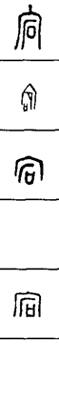 从上到下依次是小篆、甲骨文、金文、古玺及战国文字、缪篆及汉代文字、鸟虫篆。