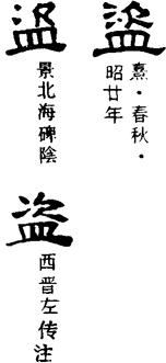 殷墟甲骨文《合集》八三一五:“丙寅卜,洹其盜。丙寅卜,洹□□(不其?)盜。”盜字作