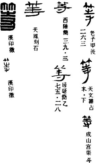 děng 《广韵》:齐也,类也,比也,辈也。 都肯切 曾开一上等端