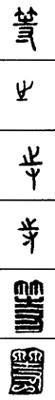 从上到下依次是小篆、甲骨文、金文、古玺及战国文字、缪篆及汉代文字、鸟虫篆。