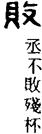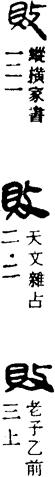 bài 《广韵》:自破曰败。说文,毁也。 薄迈切 蟹开二去夬並 又《广韵》:破他曰败。 𥙷迈切 蟹开二去夬帮