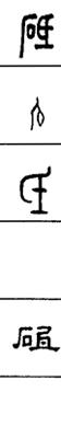 从上到下依次是小篆、甲骨文、金文、古玺及战国文字、缪篆及汉代文字、鸟虫篆。