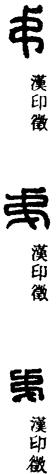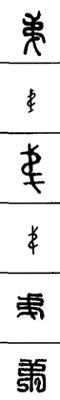 从上到下依次是小篆、甲骨文、金文、古玺及战国文字、缪篆及汉代文字、鸟虫篆。