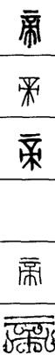 从上到下依次是小篆、甲骨文、金文、古玺及战国文字、缪篆及汉代文字、鸟虫篆。