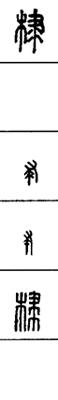 从上到下依次是小篆、甲骨文、金文、古玺及战国文字、缪篆及汉代文字、鸟虫篆。