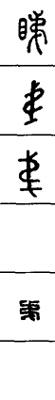 从上到下依次是小篆、甲骨文、金文、古玺及战国文字、缪篆及汉代文字、鸟虫篆。