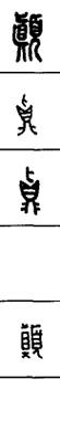 从上到下依次是小篆、甲骨文、金文、古玺及战国文字、缪篆及汉代文字、鸟虫篆。