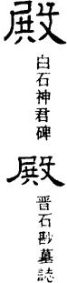 为古臀字,读tún。楷书讹变作殿,借用为宫殿字。