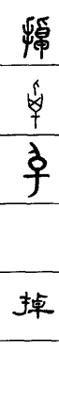 从上到下依次是小篆、甲骨文、金文、古玺及战国文字、缪篆及汉代文字、鸟虫篆。