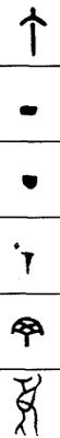从上到下依次是小篆、甲骨文、金文、古玺及战国文字、缪篆及汉代文字、鸟虫篆。