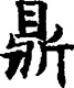 [名]①古代烹煮用的器具。圆形三足两耳或方形四足双耳。亦用作祭祀礼器或墓葬明器。杜牧《阿房宫赋》:鼎铛玉石,金块珠砾。《吕氏春秋·察今》:尝一脟肉,而知一镬之味,一鼎之调。蒲松龄《促织》:问者爇香于鼎,再拜。②喻指权力或地位。《左传·宣公三年》:成王定鼎于郏鄏。《后汉书·陈球列传》:公出自宗室,位登台鼎。[形]显赫,盛大。庾信《周车骑大将军贺娄公神道碑》:公六郡良家,西河鼎族。[副]表示正在进行的动作或正在出现的状况。正,方。《汉书·贾谊传》:天子春秋鼎盛。