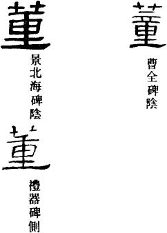 〈辨〉董字篆书董从童声,楷书改为从重声。本为草名,鼎董即长苞香蒲,为香蒲科多年生草本植物;借用为董理、董事字。