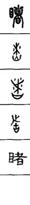 从上到下依次是小篆、甲骨文、金文、古玺及战国文字、缪篆及汉代文字、鸟虫篆。