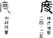 〈辨〉度字形符从又,又即是手,本义为计量长短。声符庶,读shù。