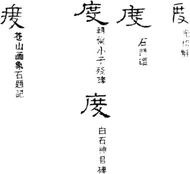 从上到下依次是小篆、甲骨文、金文、古玺及战国文字、缪篆及汉代文字、鸟虫篆。