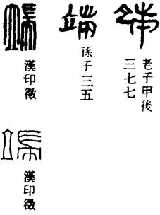 耑音duān。耑的本义是植物开始萌发的尖端。《说文》:“物初生之题也。上象其形,下象其根也。”引申为物的尖端。《周礼·考工记下·磬氏》:“以其一为之厚。已上,则摩其旁;已下,则摩其耑。”(用股鼓的宽度三分之一为它的厚度。如果发出的声音太清,就磨它的两旁作调节;发出声音太浊,就刮两端作调节。摩,通磨。已上,指声太上,过清。已下,指声太下,过浊。)《汉书·天文志》:“随北耑锐,若见若不见,曰阴德,或曰天一。”(随着北端开始尖锐,若隐若现,叫做阴德星,又称天一星。见,同现。)《汉书·艺文志》:“言感物造耑,才知深美,可与图事,故可以为列大夫也。”(说的是因对外物有感开始写出文章,才智精深美好,能够跟他们计议大事,所以能够凭此进入士大夫行列。造耑,即造端,起始,发端。知,同智。列,行列,位次。)“物的尖端”义,后来加义符“立”写作“端”。