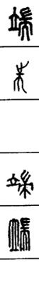从上到下依次是小篆、甲骨文、金文、古玺及战国文字、缪篆及汉代文字、鸟虫篆。