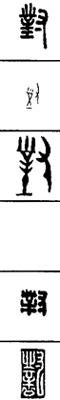 〈辨〉对字甲骨文象手执前端有齿的兵器,本义为对打、敌对;引申为应对字。金文字形讹变。篆书又加口为形符,为应对义的本字;汉文帝又去口,改以士为形符,表示士人应对诚实。楷书作對,简化作对。