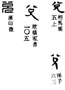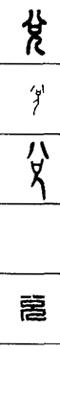 从上到下依次是小篆、甲骨文、金文、古玺及战国文字、缪篆及汉代文字、鸟虫篆。