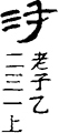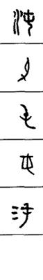 从上到下依次是小篆、甲骨文、金文、古玺及战国文字、缪篆及汉代文字、鸟虫篆。