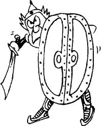 [名]盾牌。古代一种防护兵器。司马迁《鸿门宴》:哙即带剑拥盾入军门。司马迁《鸿门宴》:樊哙侧其盾以撞,卫士仆地。