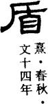 象形,■,9画。①古代一种防护武器,可以遮挡敌方刀矛箭矢