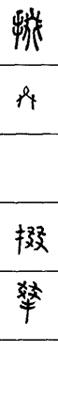 从上到下依次是小篆、甲骨文、金文、古玺及战国文字、缪篆及汉代文字、鸟虫篆。